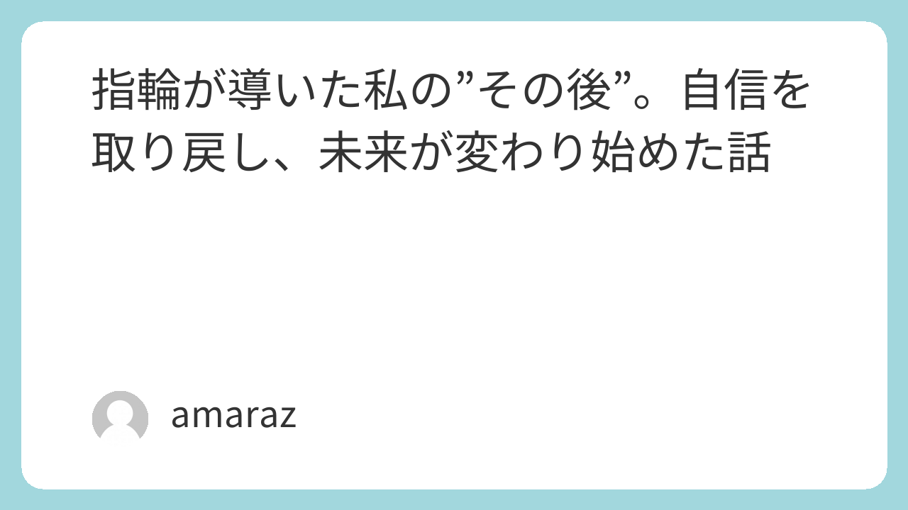 指輪が導いた私の”その後”。自信を取り戻し、未来が変わり始めた話